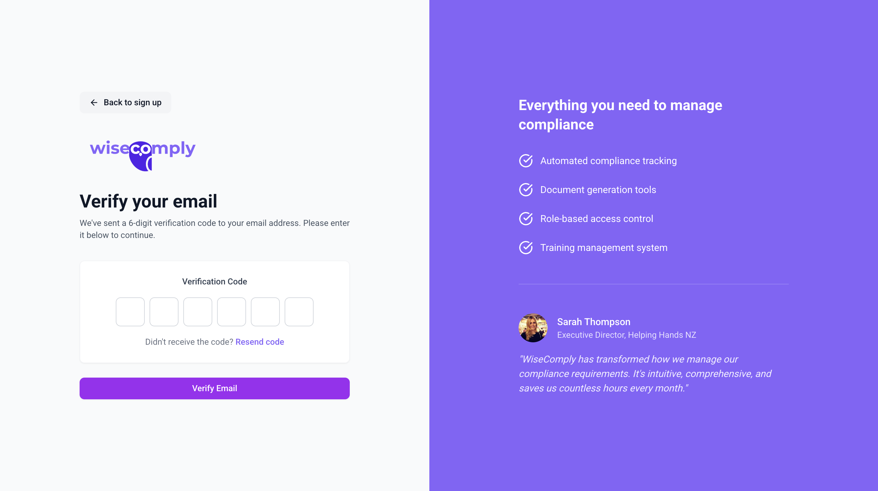 · You must verify your email before accessing WiseComply